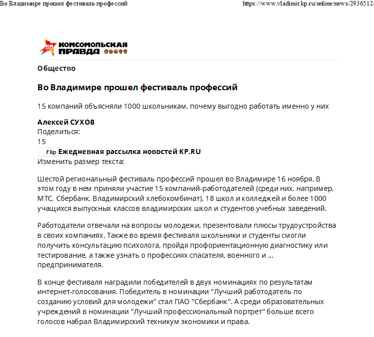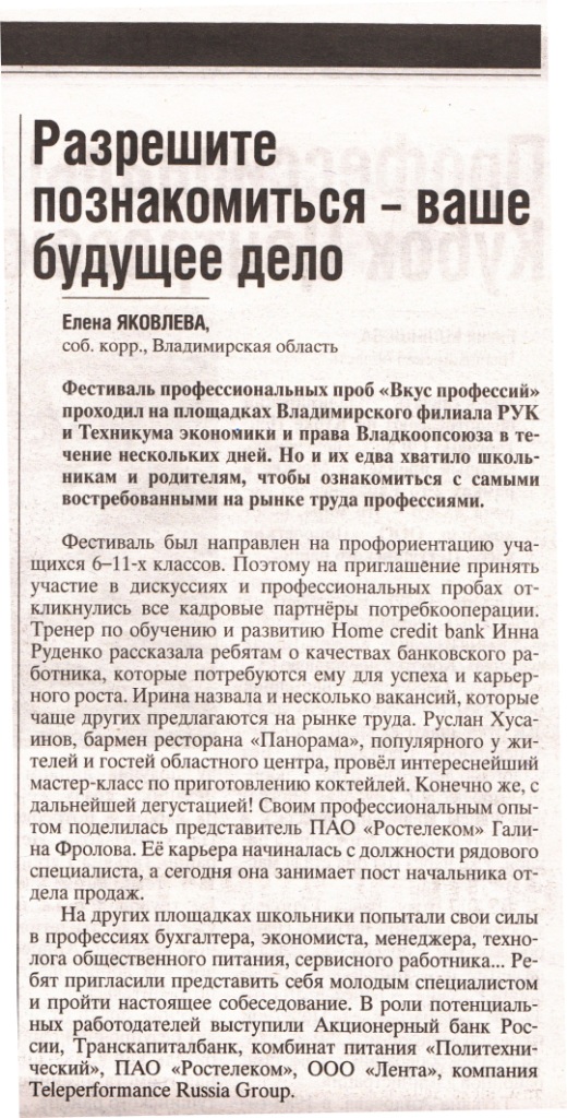 Шестой региональный фестиваль профессий прошел во Владимире 16.11.2017