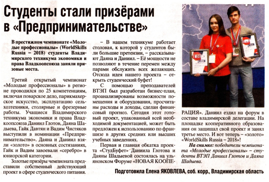 Победители WorldSkills 21.02.2018
