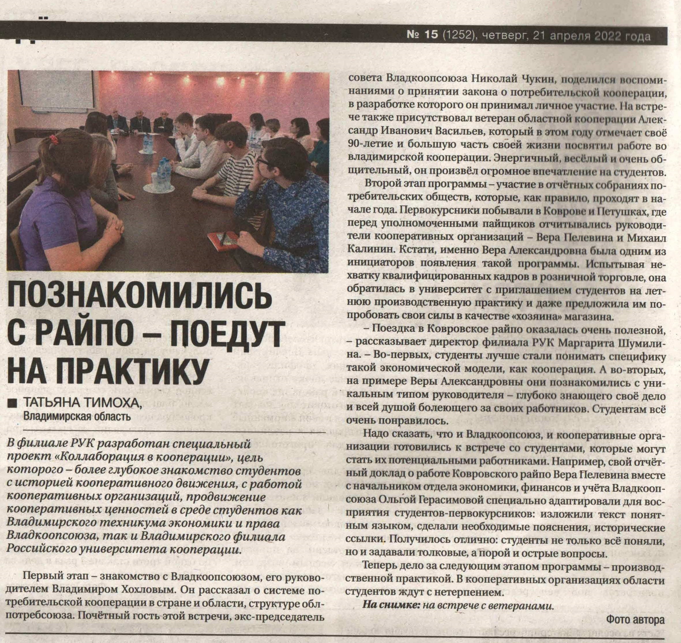 "Российская кооперация" № 15 (1252) от 21.04.2022