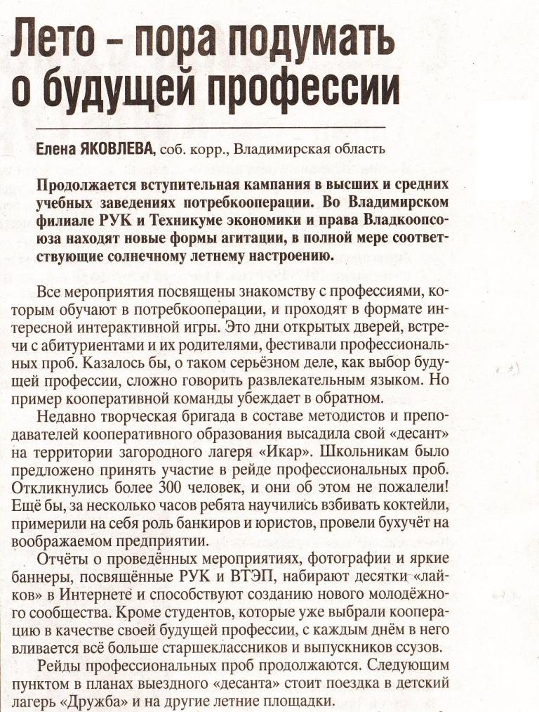 "Российская кооперация" №35 от 04.09.2014