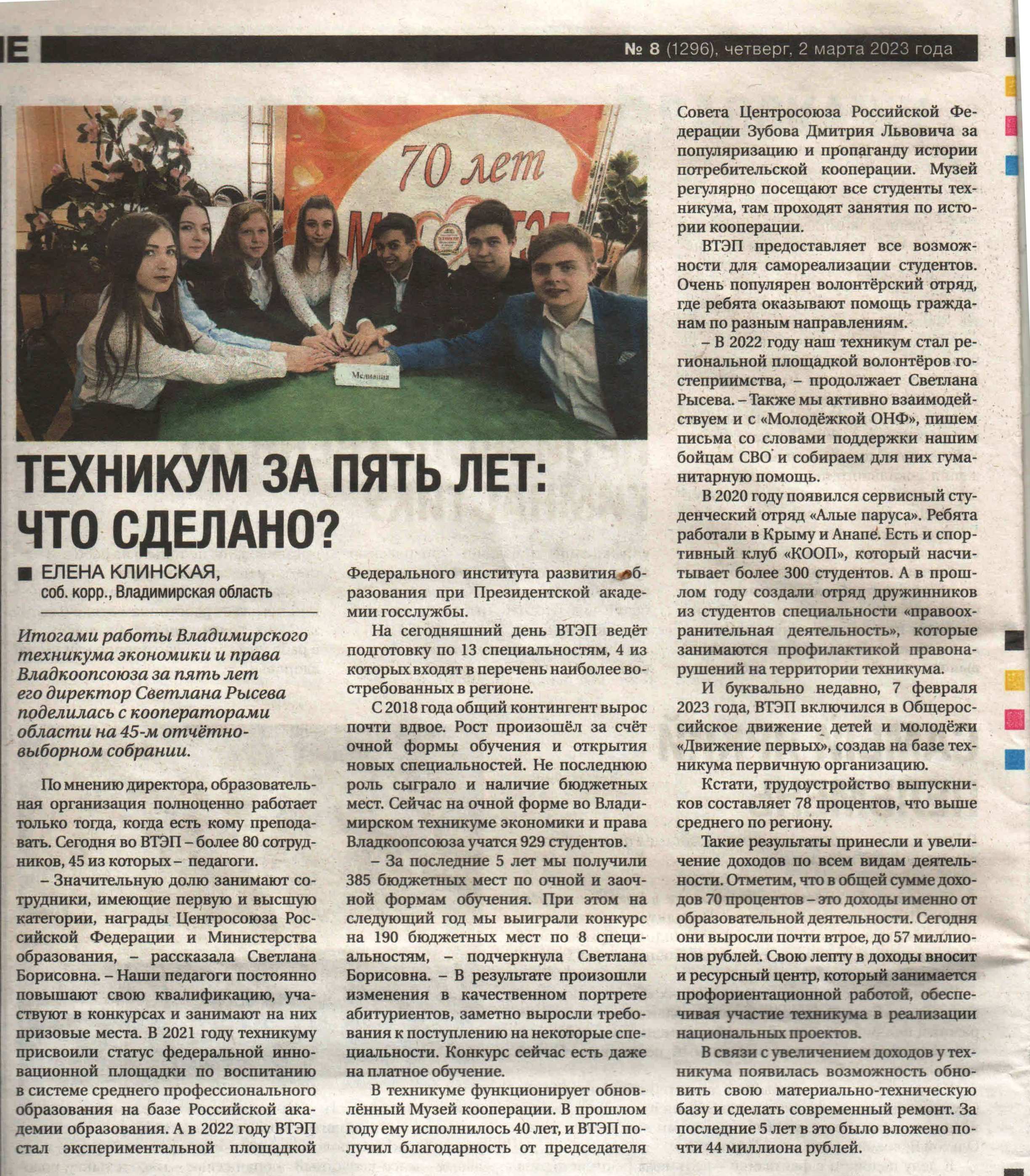 "Российская кооперация" № 8 (1296) от 02.03.2023